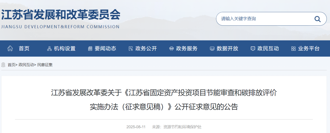 時間:2025-08-14 13:47:46 作者:GBWindows 來源:行業(yè)網(wǎng)站 閱讀:800內(nèi)容摘要:碳中和觀察獲悉,日前,江蘇發(fā)改委發(fā)布《江蘇省固定資產(chǎn)投資項目節(jié)能審查和碳排放評價實施辦法(征求意見稿)》,旨在建立能耗雙控向碳排放雙控轉(zhuǎn)型新機制,加強項目能源消費和碳排放管理。辦法適用于省內(nèi)各級政府投資主管部門管理的固定資產(chǎn)投資項目,明確節(jié)能審查和碳排放評價的定義,規(guī)定審查意見是項目開工、驗收和運營的重要依據(jù)。同時,辦...碳中和觀察獲悉,日前,江蘇發(fā)改委發(fā)布《江蘇省固定資產(chǎn)投資項目節(jié)能審查和碳排放評價實施辦法(征求意見稿)》,旨在建立能耗雙控向碳排放雙控轉(zhuǎn)型新機制,加強項目能源消費和碳排放管理。辦法適用于省內(nèi)各級政府投資主管部門管理的固定資產(chǎn)投資項目,明確節(jié)能審查和碳排放評價的定義,規(guī)定審查意見是項目開工、驗收和運營的重要依據(jù)。同時,辦法詳細規(guī)定了管理職責、審查程序、監(jiān)督管理、法律責任等內(nèi)容,強調(diào)審查結(jié)果納入投資項目在線審批監(jiān)管平臺,加強統(tǒng)計分析、事中事后監(jiān)管,對違規(guī)行為有明確處罰措施,還包含節(jié)能報告、項目情況說明、節(jié)能信息表等附件要求。
