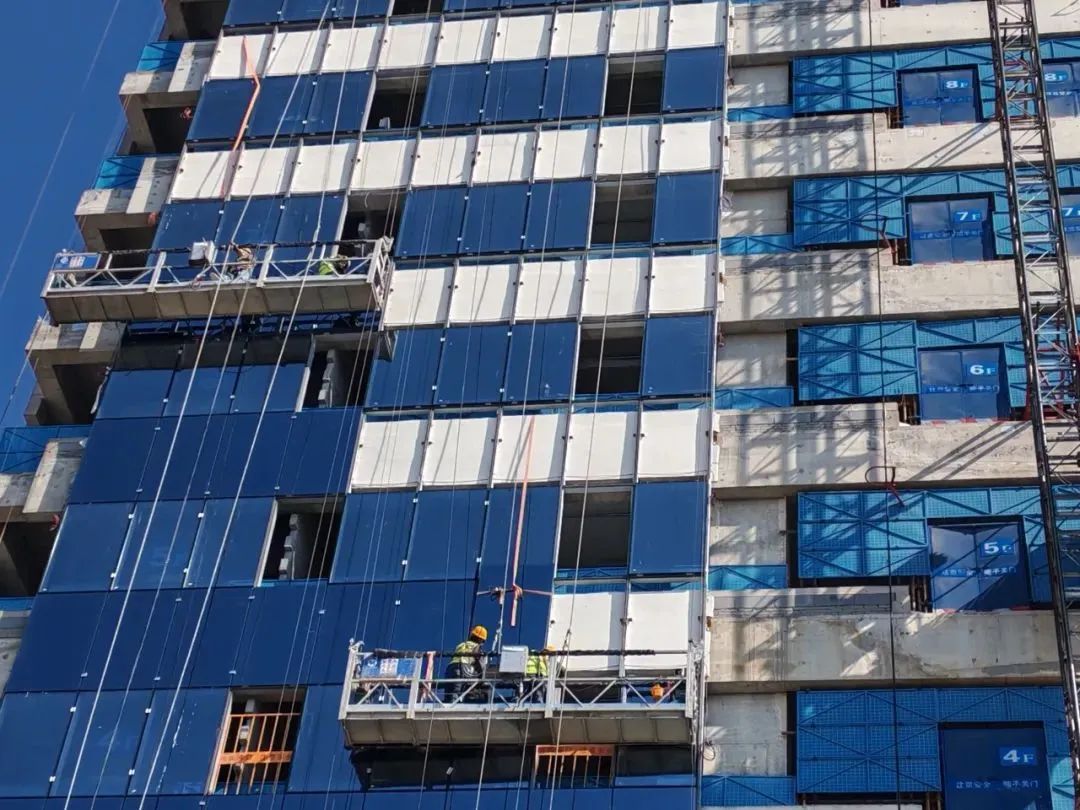 在幕墻施工過(guò)程中,面對(duì)立面?zhèn)鹘y(tǒng)幕墻與光伏幕墻交疊布置的復(fù)雜安裝挑戰(zhàn),江河幕墻團(tuán)隊(duì)展現(xiàn)出了專業(yè)的實(shí)力與匠心精神。