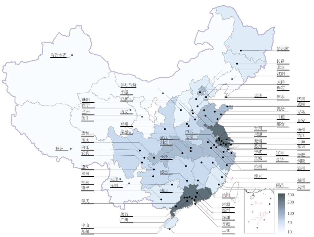 課題組開展的建筑立面空調(diào)外機調(diào)研覆蓋的省份和數(shù)量