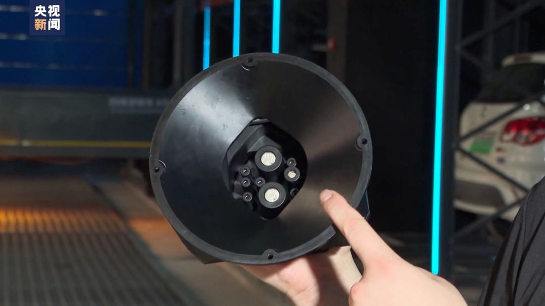 在這套停車(chē)系統(tǒng)中,反向供電的“秘密”藏在一個(gè)只有碗口大小的設(shè)備。有了它相當(dāng)于在新能源汽車(chē)底部安裝了額外的充電口,當(dāng)車(chē)輛停穩(wěn)后,充放電機(jī)器人就會(huì)進(jìn)行自動(dòng)鏈接。鏈接成功后,數(shù)字化系統(tǒng)就會(huì)按需分配,對(duì)大樓提供持續(xù)穩(wěn)定的電源。
