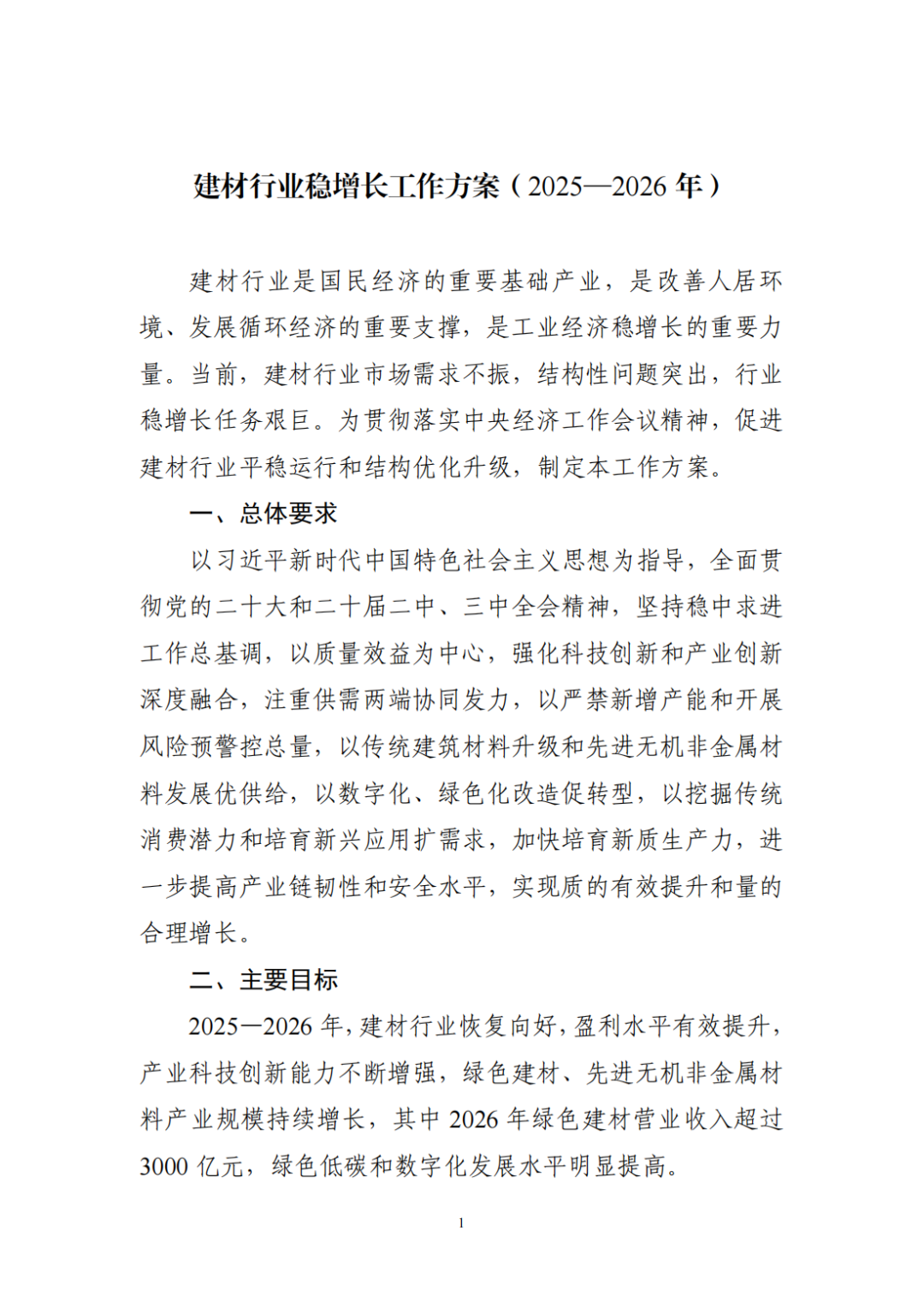 關(guān)于印發(fā)《建材行業(yè)穩(wěn)增長(zhǎng)工作方案(2025—2026年)》的通知