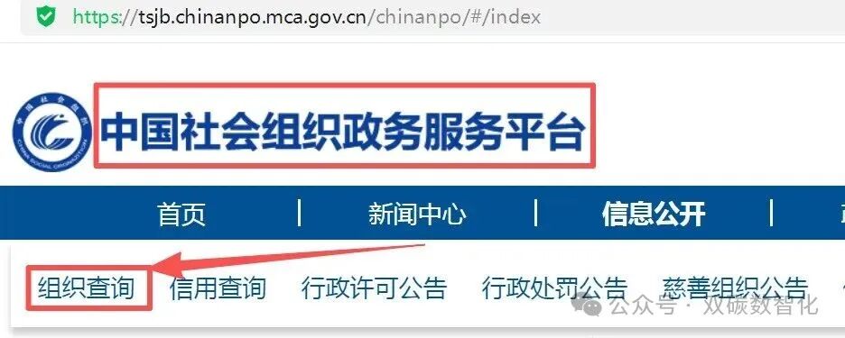 在“中國社會組織政務服務平臺”上使用“信息公開-組織查詢功能”,見下圖。