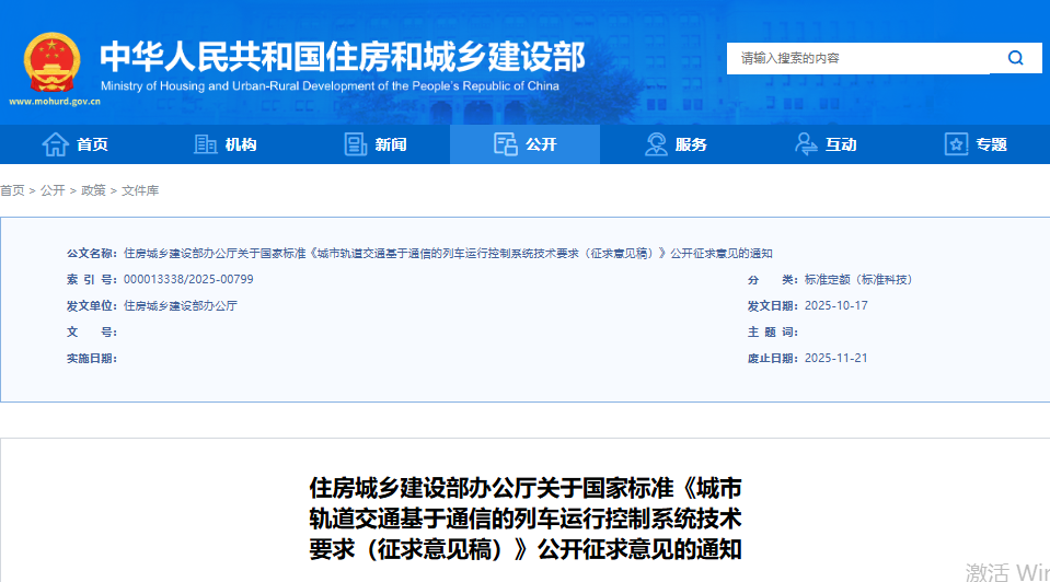 根據(jù)《國家標(biāo)準(zhǔn)化管理委員會關(guān)于下達(dá)2024年第五批推薦性國家標(biāo)準(zhǔn)計劃及相關(guān)標(biāo)準(zhǔn)外文版計劃的通知》(國標(biāo)委發(fā)〔2024〕32號),我部組織北京交通大學(xué)等單位起草了國家標(biāo)準(zhǔn)《城市軌道交通基于通信的列車運行控制系統(tǒng)技術(shù)要求(征求意見稿)》(見附件)。現(xiàn)向社會公開征求意見。有關(guān)單位和公眾可通過以下途徑和方式提出反饋意見: