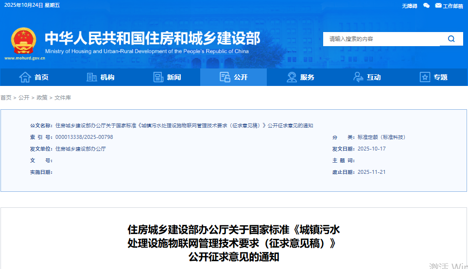 根據(jù)《國家標(biāo)準(zhǔn)化管理委員會關(guān)于下達(dá)2024年第二批推薦性國家標(biāo)準(zhǔn)計劃及相關(guān)標(biāo)準(zhǔn)外文版計劃的通知》(國標(biāo)委發(fā)〔2024〕18號),我部組織南京大學(xué)等單位起草了國家標(biāo)準(zhǔn)《城鎮(zhèn)污水處理設(shè)施物聯(lián)網(wǎng)管理技術(shù)要求(征求意見稿)》(見附件)?,F(xiàn)向社會公開征求意見。有關(guān)單位和公眾可通過以下途徑和方式提出反饋意見: