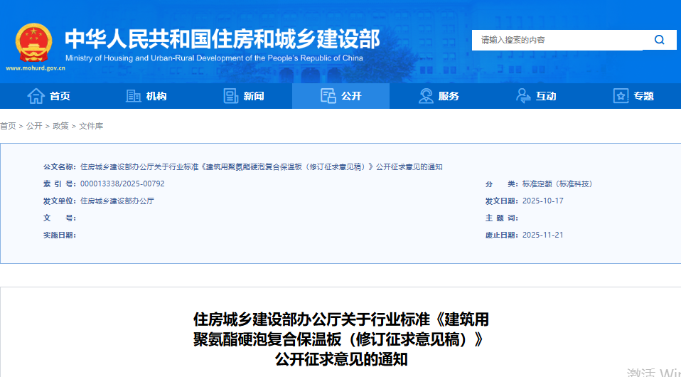 住建部對3項國家標(biāo)準(zhǔn),5項行業(yè)標(biāo)準(zhǔn)公開征求意見