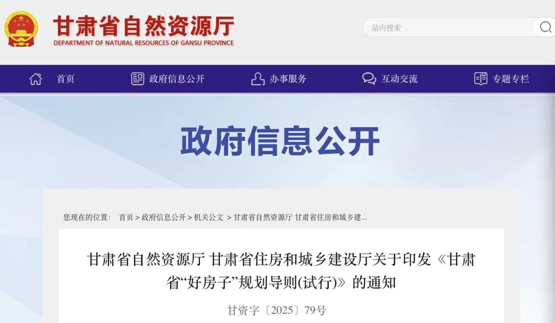 2025年9月30日,甘肅省自然資源廳、甘肅省住房和城鄉(xiāng)建設(shè)廳印發(fā)《甘肅省“好房子”規(guī)劃導(dǎo)則(試行)》。