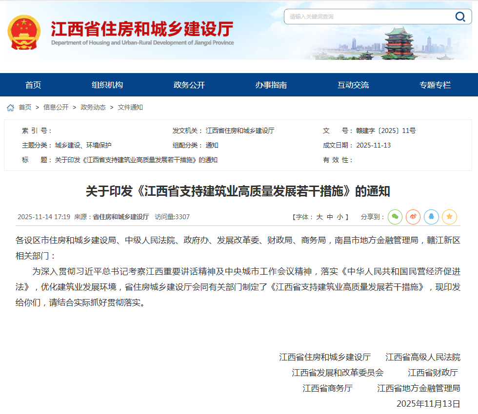 六部門印發(fā)《江西省支持建筑業(yè)高質量發(fā)展若干措施》