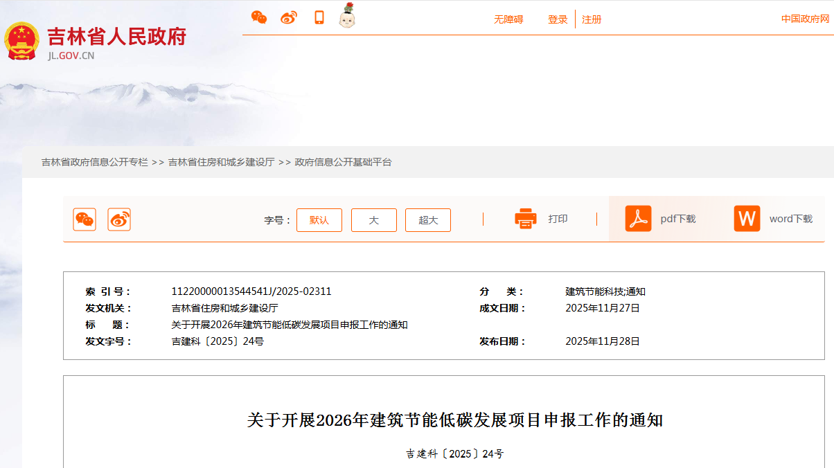 時(shí)間:2025-12-03 11:07:26 作者:GBWindows 來源:行業(yè)網(wǎng)站 閱讀:744內(nèi)容摘要:吉林省住房和城鄉(xiāng)建設(shè)廳關(guān)于開展2026年建筑節(jié)能低碳發(fā)展項(xiàng)目申報(bào)工作的通知吉建科〔2025〕24號(hào)各市(州)建委(住房城鄉(xiāng)建設(shè)局),長(zhǎng)白山管委會(huì)住房城鄉(xiāng)建設(shè)局,梅河口市住房城鄉(xiāng)建設(shè)局,各縣(市、區(qū))住房城鄉(xiāng)建設(shè)局,各有關(guān)單位:為全面落實(shí)省委城市工作會(huì)議精神,進(jìn)一步推動(dòng)建筑領(lǐng)域綠色低碳、高質(zhì)量發(fā)展,依據(jù)《吉林省高質(zhì)量運(yùn)行...