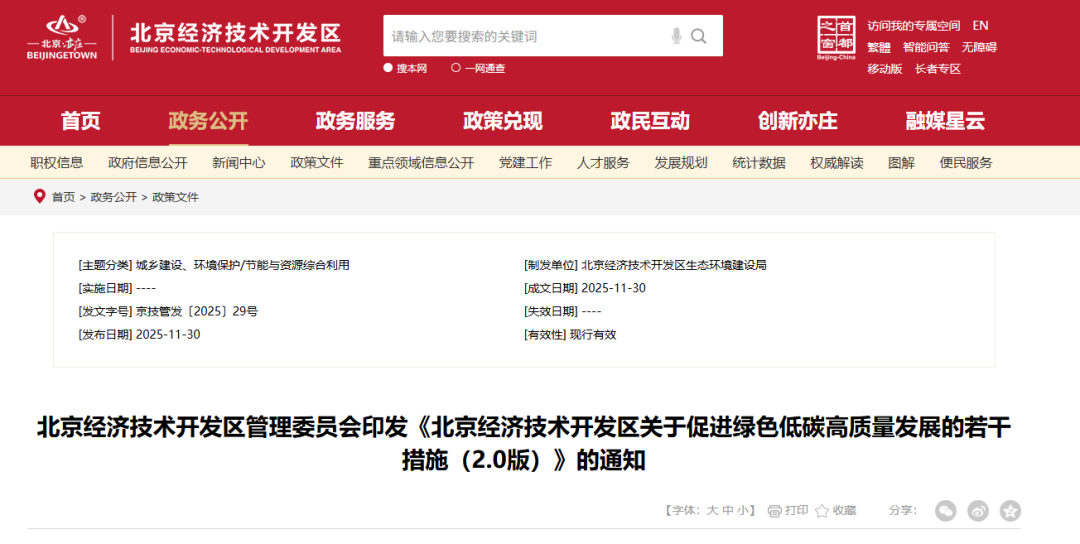 北京經濟技術開發(fā)區(qū)關于促進綠色低碳高質量發(fā)展的若干措施(2.0版)
