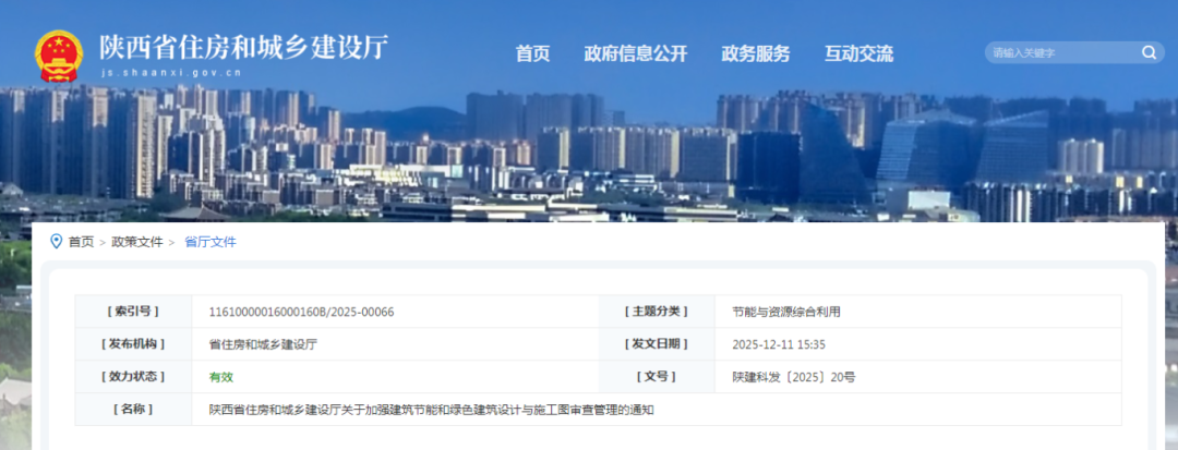 時間:2025-12-12 14:06:53 作者:GBWindows 來源:行業(yè)網(wǎng)站 閱讀:364內(nèi)容摘要:陜西省住建廳12月11日發(fā)布《關(guān)于加強(qiáng)建筑節(jié)能和綠色建筑設(shè)計與施工圖審查管理的通知》(陜建科發(fā)〔2025〕20號),要求新建、改建、擴(kuò)建民用建筑項目必須單獨編制建筑節(jié)能和綠色建筑設(shè)計專篇,明確節(jié)能指標(biāo)和綠色建筑等級。通知強(qiáng)化了建設(shè)單位、設(shè)計單位和圖審機(jī)構(gòu)責(zé)任,并建立全流程監(jiān)管機(jī)制,推動建筑領(lǐng)域綠色低碳發(fā)展。全文如下:陜...