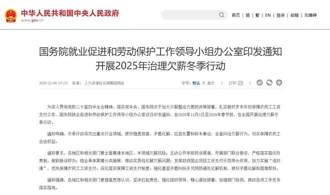 人社部、住建部、央行等七部門(mén)聯(lián)合發(fā)布《2026年根治欠薪專(zhuān)項(xiàng)行動(dòng)方案》,以更嚴(yán)舉措筑牢農(nóng)民工工資支付保障底線,打出“組合拳”。