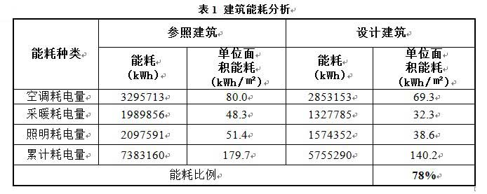 為實(shí)現(xiàn)建筑節(jié)能率60%的目標(biāo),本項(xiàng)目嚴(yán)格控制建筑的體型系數(shù),屋頂平均傳熱系數(shù)0.3 W//m2?K),外墻平均傳熱系數(shù)0.36 W/(m2?K),外玻璃幕墻傳熱系數(shù)2.0 W/(m2?K),在北京市公建節(jié)能標(biāo)準(zhǔn)要求的基礎(chǔ)上進(jìn)一步提高外圍護(hù)結(jié)構(gòu)的保溫隔熱性能。