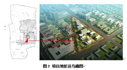 項(xiàng)目南部地塊分為兩期工程,一期為1#、4#、5#樓,為辦公科研用房及配套綜合服務(wù)用房。建設(shè)用地面積5.55萬(wàn)m2,一期總建筑面積9.60萬(wàn)m2,其中地上8~15層,建筑面積6.99萬(wàn)m2,地下兩層,建筑面積2.61萬(wàn)m2,建筑高度不大于45m,局部不大于66米。一期建設(shè)工程總投資約5.7億元。項(xiàng)目效果圖見(jiàn)圖1。