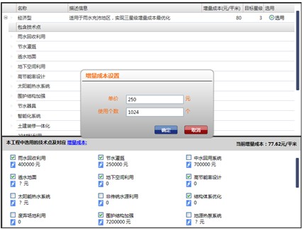 4)增量成本分析:增量成本是建設(shè)項(xiàng)目按照綠建標(biāo)準(zhǔn)設(shè)計(jì)并以星級(jí)為目標(biāo),在項(xiàng)目建設(shè)閌┕程中所導(dǎo)致的成本增加。和技術(shù)點(diǎn)對(duì)應(yīng),每項(xiàng)增加的主動(dòng)式綠色建筑技術(shù)措施都有其對(duì)應(yīng)增量,選擇技術(shù)路線的同時(shí)可參看其增量范圍,最終確定本項(xiàng)目的增量成本是多少。
