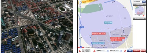 (3)軟件加載了Google Earth以及百度地圖,谷歌地區(qū)可查看項(xiàng)目所在地的土地情況,百度地圖可直接判斷主要出入口的公共交通站點(diǎn)及周邊服務(wù)設(shè)施配套;