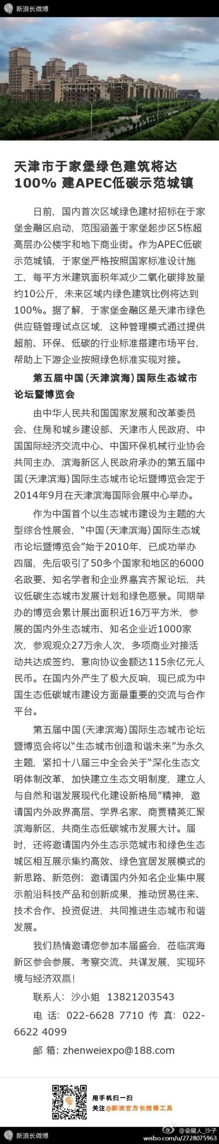 @會展人_沙子:《天津市于家堡綠色建筑將達100% 建APEC低碳示范城鎮(zhèn)》日前,國內(nèi)首次區(qū)域綠色建材招標在于家堡金融區(qū)啟動,范圍涵∮詡冶て鴆角5棟超高層辦公樓宇和地下商業(yè)街。作為APEC低碳示范城鎮(zhèn),于家堡嚴格按照國家標準設計施工,每平方米建筑面積年減少二氧化碳排放...