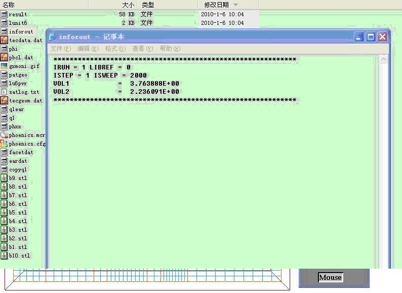 打開工作文件夾*:\phoenics\d_priv1下的inforout文件,查看流量的計(jì)算結(jié)果。